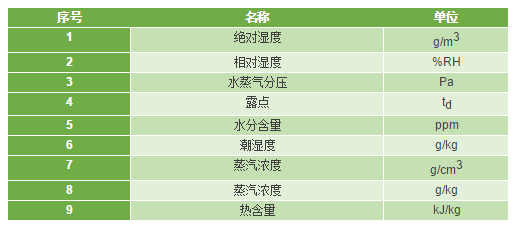 AH:*濕度(Absolute Humidity), 單位質(zhì)量或體積空氣中所含濕氣的多少,單位g/kg或g/m3;