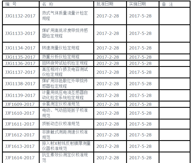 日前,國家質(zhì)量監(jiān)督檢驗檢疫總局發(fā)布《熱式氣體質(zhì)量流量計檢定規(guī)程》等27個國家計量技術(shù)規(guī)范。其中,熱式氣體質(zhì)量流量計檢定規(guī)程、掠入射X射線反射膜厚測量儀器校準(zhǔn)規(guī)范、轉(zhuǎn)速測量儀檢定規(guī)程、熱重分析儀檢定規(guī)程等21項儀器計量技術(shù)規(guī)范在內(nèi)。